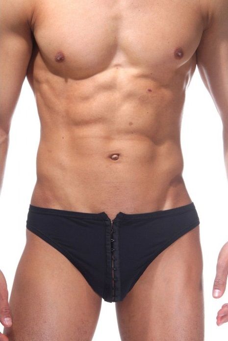 Трусы мужские бразилиана черные, с застежкой спереди.