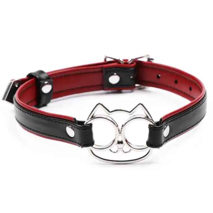 Ошейник с регулируемой застежкой. Декорирован металлическим декором - мордочкой кошки. Ошейник используется как символ подчинения, признания отношений и полного доверия. Наденьте ошейник на шею и с помощью пряжки зафиксируйте ремень. Не следует затягивать ошейник слишком туго.