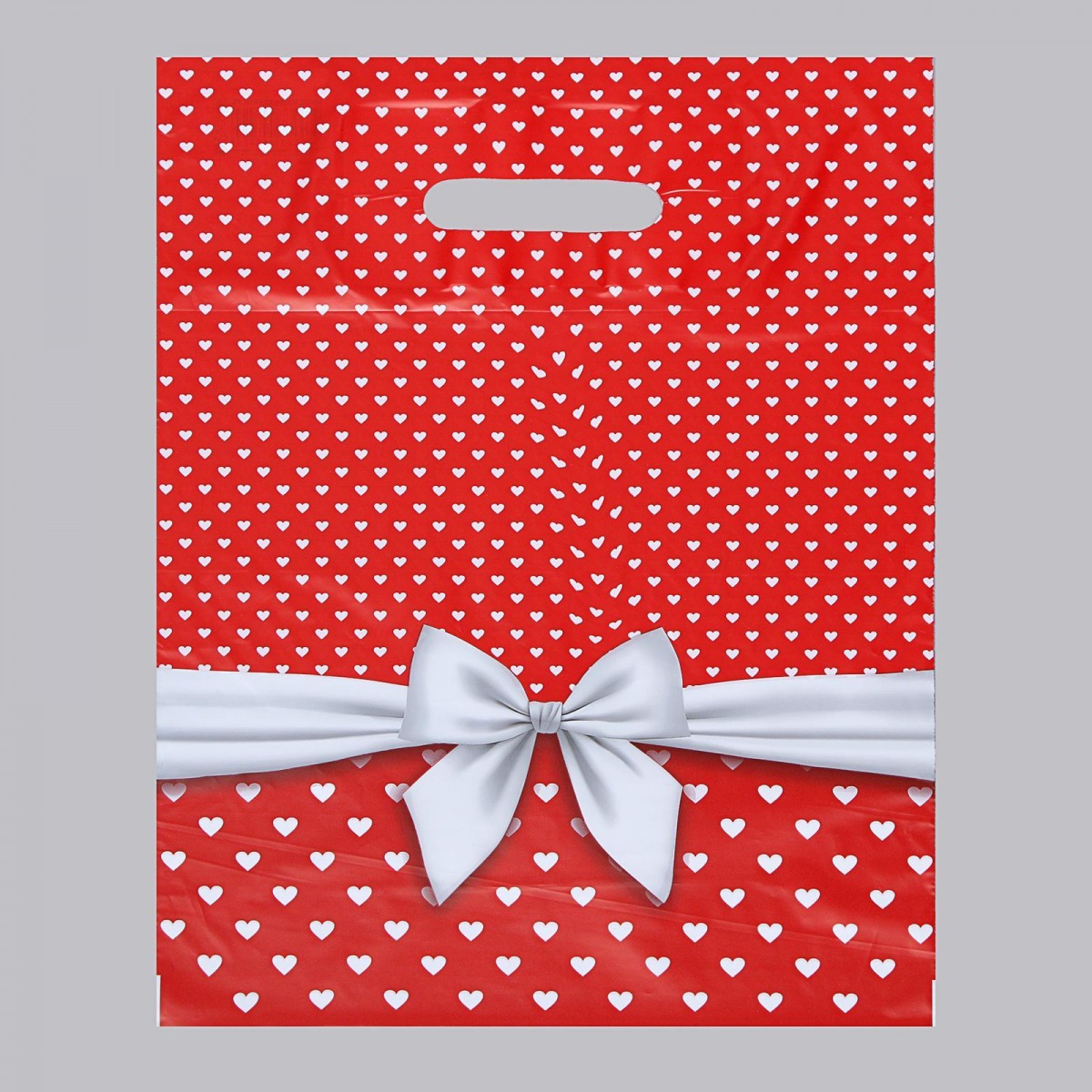 Пакет полиэтиленовый с вырубной ручкой, прочный, с оригинальным рисунком. Размеры - 30х38 см.