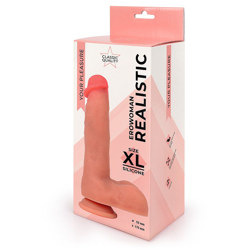 Фаллоимитатор на присоске для любителей реалистичных секс-игрушек! Интимный аксессуар отличается ярко выраженной головкой, внушительной мошонкой и роскошными размерами пениса. Натуральный оттенок, складочки и «пульсирующие» венки придают изделию больше естественности. Присоска позволяет прочно крепить фаллоимитатор на ровной поверхности в горизонтальном или вертикальном положении. Секс-игрушка изготовлена из мягкого материала, дарящего приятные тактильные ощущения. Рабочая длина - 17 см.