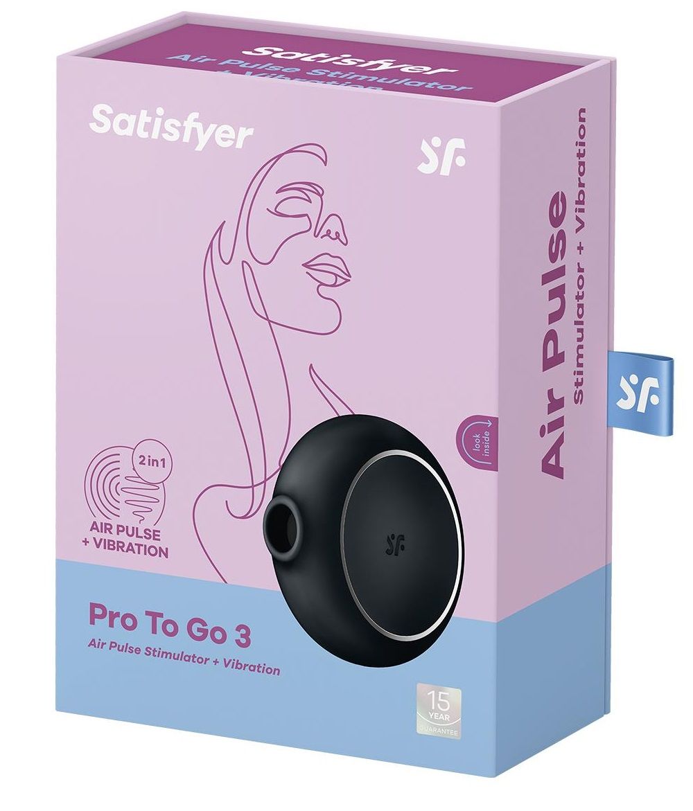 Один из самых стильных любовников для чувственных оргазмов – Pro To Go 3 от Satisfyer в черном цвете и дизайне, далеком от классических интимных игрушек. Компактный вибратор для наружной стимуляции клитора обладает двумя автономными моторами. Комбинируйте воздушную пульсацию и проникающие волны вибрации, чтобы достигать неземного блаженства каждый раз. Бесконтактная стимуляция клитора – новейшая запатентованная технология Air Pulse для женских оргазмов. В вашем распоряжении 11 уровней интенсивности вакуум-волновой стимуляции и 12 программ вибрации – от нежной до интенсивной. Интуитивно понятное управление с помощью трех кнопок на корпусе. Стильный дизайн Pro To Go 3 напоминает компактную пудреницу или гаджет для красоты, и превосходно лежит в ладони. При этом вибрация в корпусе значительно менее ощутима, чем в основной контактной части. Идеальный размер и форма, чтобы брать любимый стимулятор в дорогу. Стильный и качественный гаджет создан для эстетического и сексуального удовольствия. Потрясающий шелковистый на ощупь высококачественный гипоаллергенный силикон – визитная карточка бренда Satisfyer. Поверхность раструба мягко и деликатно стимулирует клиторальную область. Тактильно нежный и приятный на ощупь силикон быстро адаптируется к температуре вашего тела. Чтобы получить максимум удовольствия и сохранить материал в наилучшем виде, рекомендуется пользоваться качественной смазкой на водной основе.